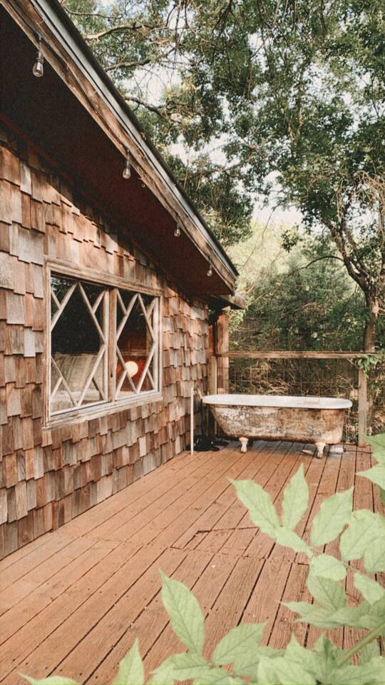 : : B A T H R O O M : : *IMPORTANT* We are on an older septic system and have delicate plumbing. We kindly ask that you flush only small amounts of toilet paper to prevent any issues during your stay. When running a bath during the colder months you may need to reduce the flow of the tap to achieve the desired temperature. Rest assured there is plenty of hot water, it may just take a while for the bath to fill! Additionally, please note that the bathroom features an elegant antique clawfoot tub but does not have a shower. The outdoor tub is an absolute dream and we can’t wait for you to experience it! Please note that during periods when temps are below freezing (a rarity in Austin) the tub is not available for use as we have to drain the lines to protect our plumbing! : : F R A G R A N C E : : We pride ourselves on being a synthetic-fragrance free space. We use all-natural cleaning products and ask that you refrain from using strong perfumes or other products that may leave a scent that lingers after you've checked out. : : H E AT I NG / C O O L I N G : : There are two mini-splits located in the main house that are operated by remote control to heat and cool the space. The second bedroom features a window AC unit and space heater. : : N O I S E : : Please note that the cabin is not suitable for those looking for total silence during their stay. While the space is quite peaceful most of the time, we are situated within earshot of houses that occasionally host large parties. We recommend booking mid-week to reduce the likelihood of any late night noise. : : W I L D L I F E : : We are proud to steward wild land where many creatures make their home. Please respect the deer, armadillos, and any other animals you see on the property by giving them space and refraining from feeding them. : : S W I M M I N G : : The cabin is located in within walking distance of Hippie Hollow (clothing optional) and Windy Point. Both require a small entrance fee so be sure to bring cash if you’d like to visit either park. : : P E S T S : : The cabin is routinely treated for pests using non-toxic compounds. However, it is located in a wooded setting and it is possible you may see some critters in or around the space during your stay. If this is the case, please let us know and we will have our team come out to re-treat the house ASAP. : : P H O T O S : : No unauthorized photoshoots are permitted on the property. If you plan to use the space for professional photo or video content you must receive prior consent and pay any applicable fees. Additional fees are based on the nature of the photo shoot and intended usage of photos. Please inquire for details. : : A L L E R G I E S : : Please note that this cabin is not suitable for anyone who suffers from Juniper (aka Cedar) allergies. The house is located in a heavily wooded area and as such, exposure to pollen is inevitable. : : C H E C K O U T : : Checkout is at 11 am. If you are still on the property after checkout, you will be charged for an additional night. We take this very seriously as we need adequate time to clean the space and prepare for our next guests. Thank you for respecting the agreed upon length of your reservation.